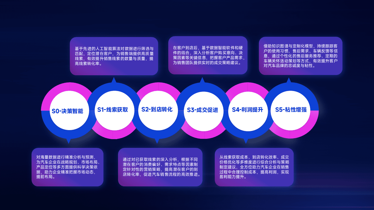 通过拓宽潜在客户来源、、、、优化线索分配并提高到店转化率,,以增强销售效率。。同时,,,利用线索数据不断优化分析模型,,,有效提升转化率,,扩大营销影响力。。。